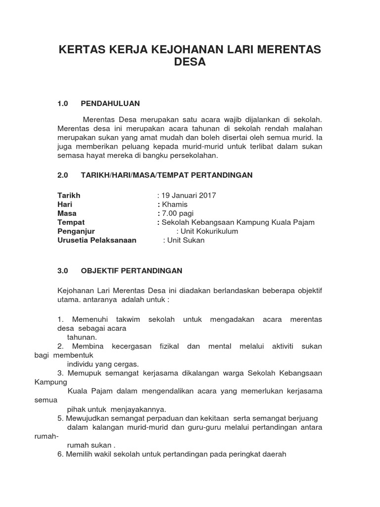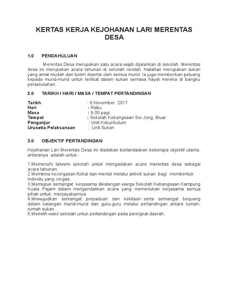 Kertas Kerja Kejohanan Merentas Desa Sdar 2018 Pages 1 12 Text Version Anyflip