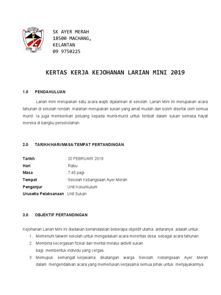 Kertas Kerja Kejohanan Larian Mini 2019 Sk Ayer Merah 18500 Machang Kelantan 09 9750225
